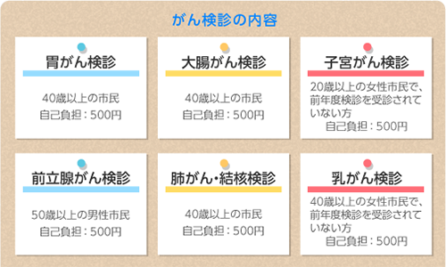 特定健診、ワンコイン検診(前立腺がん他)各種対応可です。